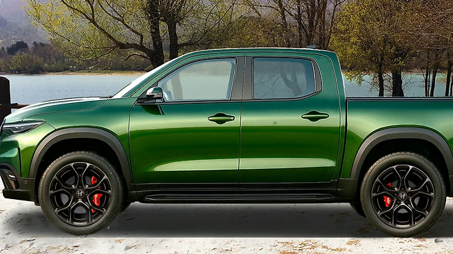 이번 렌더링 디자인은 알파로메오의 고유한 디자인 언어를 픽업트럭 세그먼트에 접목시켜 눈길을 끈다. '메탈릭 우라노 그린' 컬러로 래핑된 차체는 조각처럼 세련된 외관과 공기역학적 디자인, 강렬한 전면부의 트릴로브(삼각형 그릴), 매트릭스 LED 조명 등 알파로메오의 아이덴티티를 그대로 담고 있다.