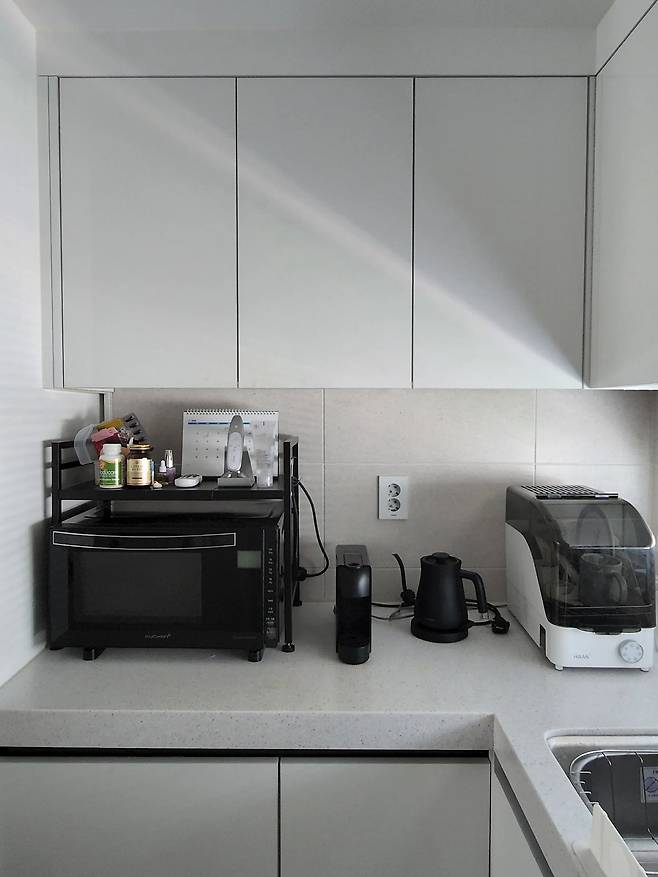 공사를 마친 뒤에는 주방에 가전제품도, 그릇도 최소한만 두었어요. 밥은 전혀 해먹지 않아서요.