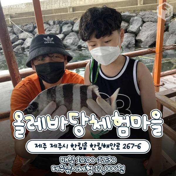 올레바당체험마을의 제주 바다 낚시 체험은 12,000원으로 가성비가 훌륭한 편입니다. 물론 잡아올린 물고기는 곧바로 방생해줘야 하나, 체험이 끝나면 아이들을 위한 사탕이나 톳 등을 기념품으로 제공해주기도 해 어린 아이가 있는 가족여행에 추천하는 제주 바다 낚시 체험입니다.