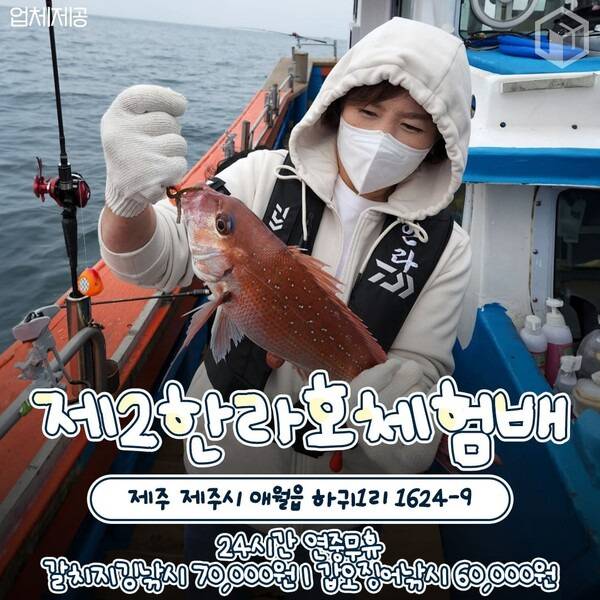 제주도에서 선상체험낚시를 전문으로 하는 제2한라호체험배입니다. 초보자도 쉽게 고기를 낚을 수 있도록 메탈지그, 텐빈, 텐야, 오모리그 등 전문 장비를 대여해주고 있기도 한데요. 아이들은 물론 처음 선상 낚시를 경험하는 분들 역시 낚시의 손맛을 느낄 수 있어 후기가 좋습니다.