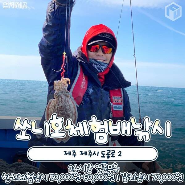 갈치, 한치, 갑오징어까지 제주 바닷 속을 누비는 어종을 선택해 바다 낚시 체험을 해볼 수 있는 쏘니호체험배낚시입니다. 늦은 밤 12시에도 출항하는 배가 있어 제주도에서 밤까지 알찬 여행을 즐기고 싶은 분들에게 추천하고 싶은 제주 바다낚시 체험이기도 한데요.
