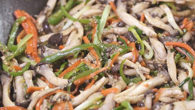 쫄깃한 버섯에 아삭한 채소, 감칠맛까지 더해져 맛은 물론 건강까지 챙길 수 있는 느타리버섯볶음입니다.