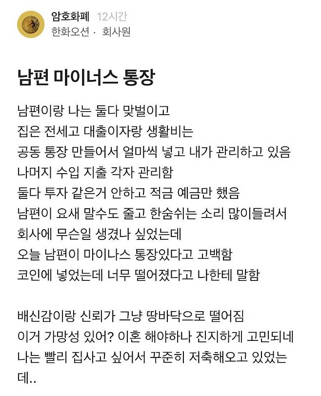 아내 몰래 마이너스 통장 만들어서 남편이 한 행동