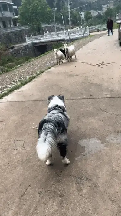 한적한 길가에서 보더콜리 한 마리가 우연히 양 몇 마리를 만났습니다. 순간 날카로운 눈빛을 번뜩이며 '목양견'으로서의 본능이 깨어났습니다!