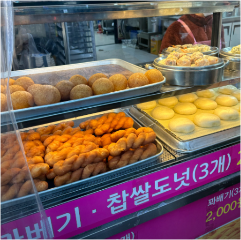 ✔ 찹쌀도넛 – 3개 2,000원 (달콤하고 쫄깃한 식감)