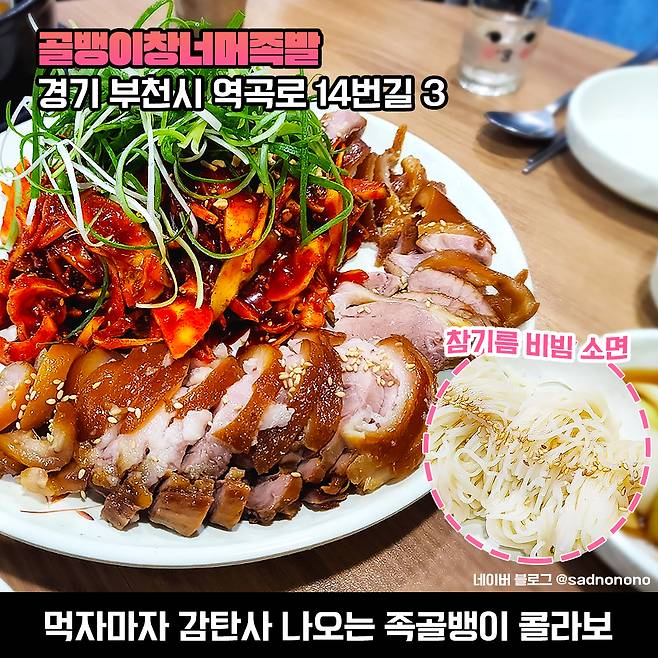마지막으로 소개해 드릴 곳은 동해산 백고동을 매콤하게 무쳐 쫄깃한 족발을 곁들여 먹는 족골뱅이 맛집이에요. 자꾸자꾸 생각나서 재방문하게 되는 건 안 비밀~ 부천 지나가실 일 있을 땐 꼭 들러 보시길 추천 드릴게요.