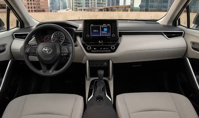 2026년형 코롤라 크로스의 실내는 최신 인포테인먼트 시스템을 적용하여 운전자와 승객의 편의성을 높였다. 대형 터치스크린 디스플레이와 디지털 계기판은 직관적인 조작을 가능하게 하며, 무선 애플 카플레이와 안드로이드 오토를 지원하여 스마트폰과의 연동성을 강화했다. 또한, 고급 소재를 사용한 실내 마감은 차량의 품격을 한층 높였다.