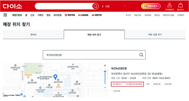 다이소 공식 홈페이지 ‘매장 찾기’에서 매장을 검색한 뒤, 전화번호를 확인하면 구분이 가능합니다. 대표번호(1522-4400)는 직영점, 지역번호가 표시된 경우는 가맹점일 가능성이 높습니다. 또한 매장 출입문에 ‘소비쿠폰 사용 가능’ 스티커가 부착되어 있다면 안심하고 사용하실 수 있습니다.