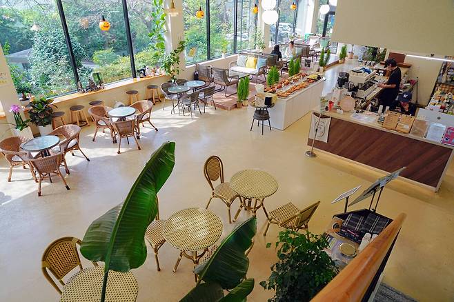 특히 유리로 이루어진 온실 공간에서는 자그마한 숲을 감상하며 이색데이트를 즐길 수 있는 것도 장점이죠. 메뉴 또한 색다른데요. 풍미 가득한 시그니처 ‘만디라테’를 비롯해 수박주스, 파니니, 스콘 등 달콤하고 신선한 음료와 디저트를 맛볼 수 있답니다.