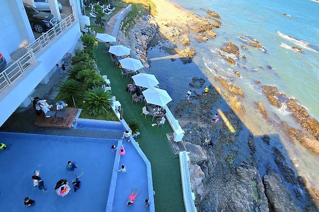 5층 루프탑에서는 탁 트인 하늘과 동해의 푸르름을 동시에 감상할 수 있어 인스타 사진 남기기도 좋답니다. 같은 건물 내에 풀빌라 펜션과 수영장도 이용할 수 있는데요. 여름휴가 코스로 부산을 온다면, 씨앤트리 카페에 방문해 보는 것도 좋은 선택이 될 것입니다.