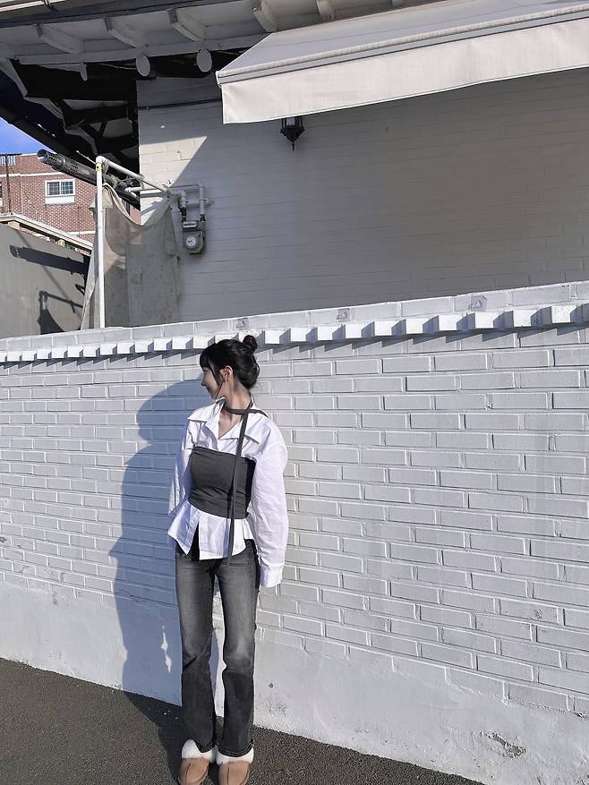 무채색의 깔끔한 조합이라 사진이 아주 잘 나오는 룩이에요.