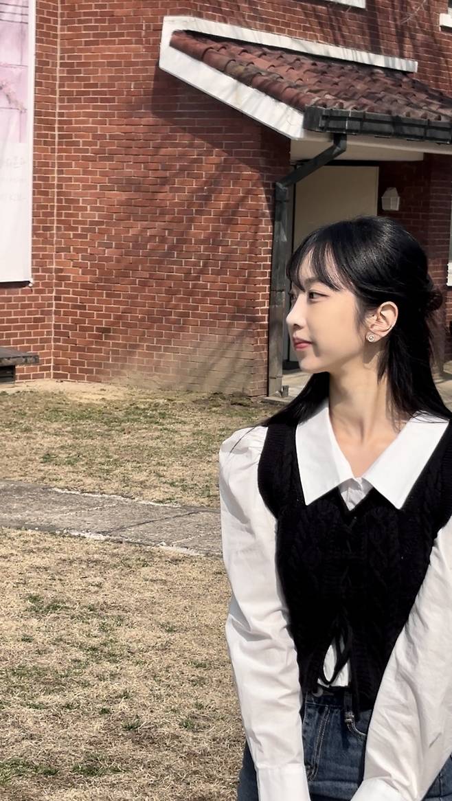 두 번째 룩은 좀 더 귀엽고 단정한 무드를 살린 스타일이에요.