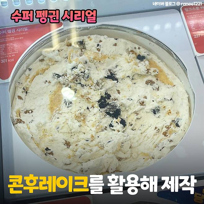 특히 수퍼 펭귄 시리얼은 배스킨라빈스에서 처음으로 원재료 '콘후레이크 리본'을 활용해 제작한 맛으로 인기를 끌었어요! 색다른 맛으로 밥심도 속절없이 스며들어 버렸다는..☆