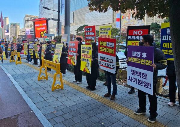 HL디앤아이한라가 브랜드 변경 문제로 홍역을 치르고 있는 대표적인 건설사다. 지난 11월 22일 기존 ‘비발디’ 아파트 입주민들이 서울 송파구 잠실에 있는 건설사 본사 앞에 모여 새 브랜드인 ‘에피트’를 적용해달라는 집단 시위를 벌이면서다. 이날 시위에는 2025년 9월 입주를 앞둔 경기 시흥시 ‘신천역 한라비발디’(1297가구)를 비롯해 충북 청주시 ‘월명공원 한라비발디 온더파크’(2026년·874가구), 인천시 계양구 ‘작전 한라비발디’(2025년·340가구) 수분양자들이 참석한 것으로 알려졌다. 더불어 전북 군산·김해 장유 등 전국 한라비발디 7개 단지 입주자들은 항의의 의미로 본사 앞에 근조화환을 발송하기도 했다.
