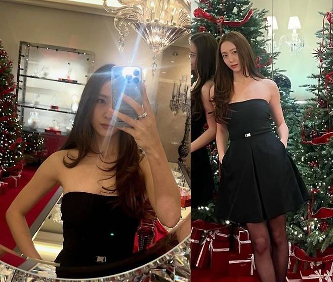크리스탈은 2일 인스타그램에 블랙 미니 원피스를 착용한 사진을 게재했습니다.