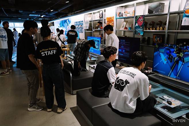 혼자서 온 참관객 또한 걱정할 필요 없습니다. 현장에는 참관객들이 게임을 플레이할 수 있도록 돕는 NPC(운영인력)가 상주하고 있으며, 게임마다 플레이어가 모자랄 때 언제든지 달려와 자리를 함께 해 주었습니다. 4인용 게임일 경우에는, 생면부지의 다른 참관객들과 동석해 함께 협동하는 모습도 볼 수 있었죠. 이처럼 게임을 통해 서로 교류하고, 즐거운 추억을 만들 수 있는 공간을 만드는 것이 '2P 게임 아케이드'의 행사 의의이기도 합니다.