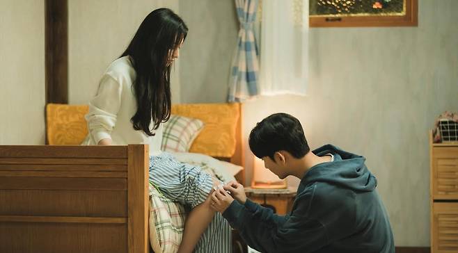 김수현과 김지원에게서 다정한 기류가 포착됐다. 가파른 상승 질주를 이어가는 중인 tvN 토일드라마 <눈물의 여왕>에서 백현우(김수현 분)와 홍해인(김지원 분)이 용두리에서 하룻밤을 보내고 있는 모습이 공개돼 시선을 끌어모으고 있는 것.