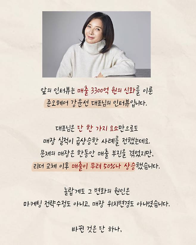 매출 3300억 준오헤어 대표가 가장 중요하게 생각하는 거라는데..