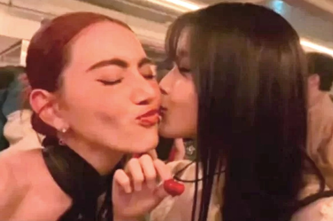 해당 영상 속엔 아이유가 등장하며 다비카 후네는 이날 생일인 아이유에게 “생일 축하해”라며 입술을 내밀었다.
