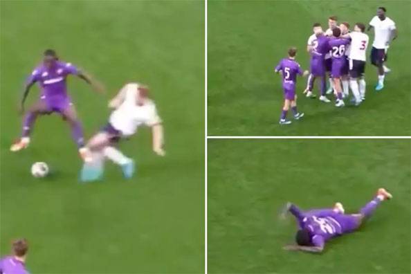 친선 경기에서 무서운 태클이 나왔다.