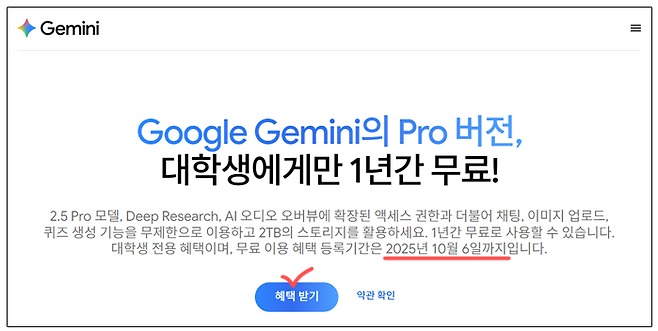 이번에 구글 제미나이에서 대학생과 대학원을 대상으로 파격적인 프로모션을 진행하고 있다. 만 18세 이상 대학생, 대학생원생이라면 누구나 1년 동안 구글 제미나이 AI Pro를 무료로 쓸 수 있는 혜택을 받을 수 있다.