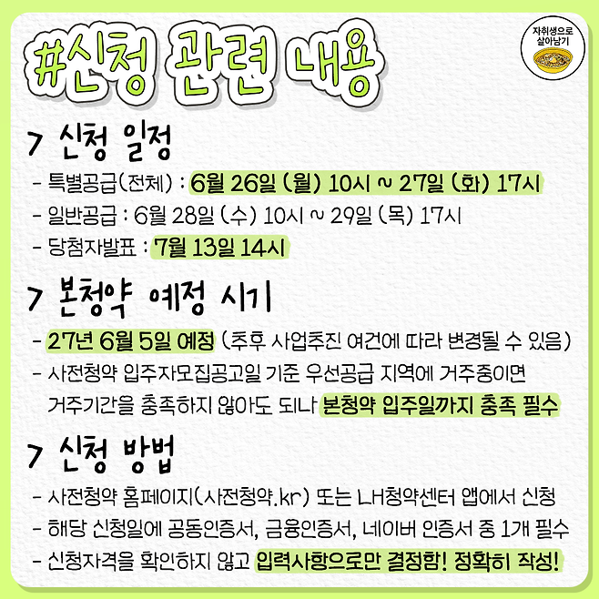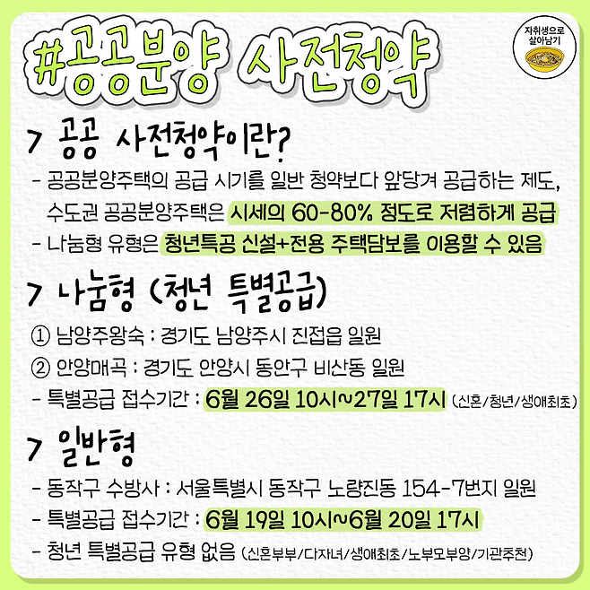 다음주 시작! 미혼청년 특별공급 사전청약 정보