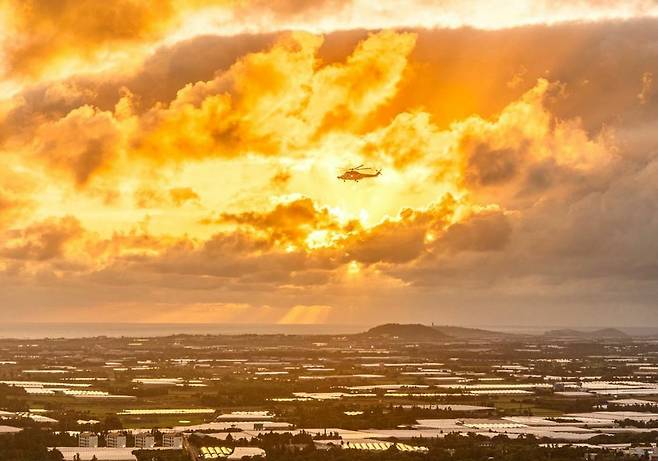 애월읍에 숨은 일몰 명소, 아직까지 사람들이 많이 찾지 않는 오름 중 한 곳입니다. 정상에 오르면 광활하게 펼쳐진 논밭과 알록달록한 마을 지붕이 한 눈에 보이는 곳인데요.