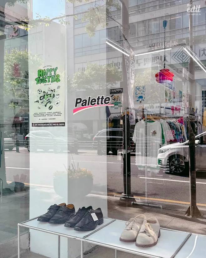 샵 팔레트는 ‘Love Diversity’ 라는 방향성에 맞게 개성 있는 옷들이 많았다. 좋았어, 소매를 걷어 올리고 본격적으로 발품을 팔아보자. 옷걸이를 하나씩 넘기며 꼼꼼히 본다. 뒷주머니 디테일이 끝장나는 멋진 바지는 주로 꼭꼭 숨어있는 경우가 많다.
