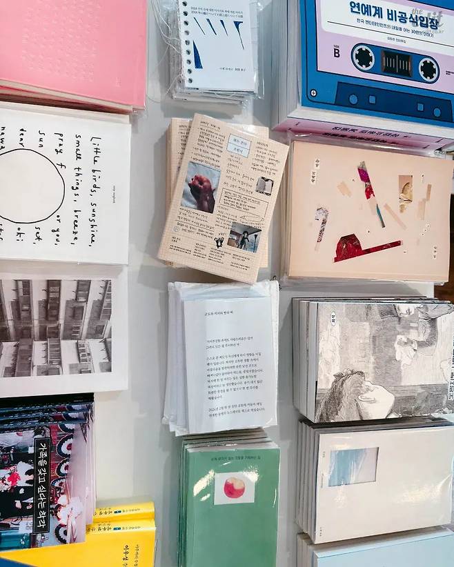골목골목을 구경하던 중, 유령이 앉아서 책을 읽는 입간판에 시선이 가서 찾아보니 북페어에서 여러 번 봤던 독립 서점 ‘고스트북스’였다. 반가운 마음에 헐레벌떡 올라가 일행에게 오래 있어도 되겠냐는 허락을 받고 책을 천천히 훑기 시작했다.