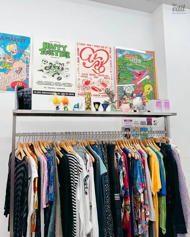 대구의 대표 빈티지숍 중 하나인 ‘리리썬’. 리리썬은 양보다 질로 승부하는 빈티지숍이다. 마구잡이로 모아놓은 것이 아니라, 섬세하게 큐레이션한 좋은 컨디션의 빈티지 의류를 판매하고 있다. 주로 이세이 미야케, 질 샌더, 랄프 로렌 등 브랜드 옷이라 그만큼 가격대도 살짝 높다. 딱 그 시절 미국 빈티지로, 살짝 색이 바랜 일러스트가 매력적이다.