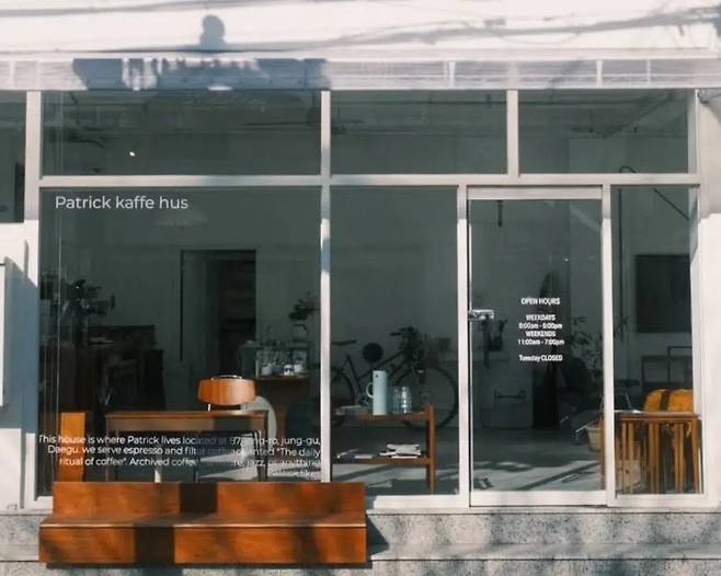 흰 건물의 일 층, 통창으로 가게 내부가 훤히 들여다보인다. 책상과 소파, 가구 하나하나가 예사롭지 않았다. 덴마크에 사는 패트릭의 집이라는 콘셉트로, ‘coffee, desser, furniture, jazz or anything Patrick likes.(커피, 디저트, 가구, 재즈, 혹은 패트릭이 좋아하는 모든 것.)’ 라는 인스타그램 프로필의 소개 한 줄마저 이마를 치게 한다. 여기 잘 하잖아?