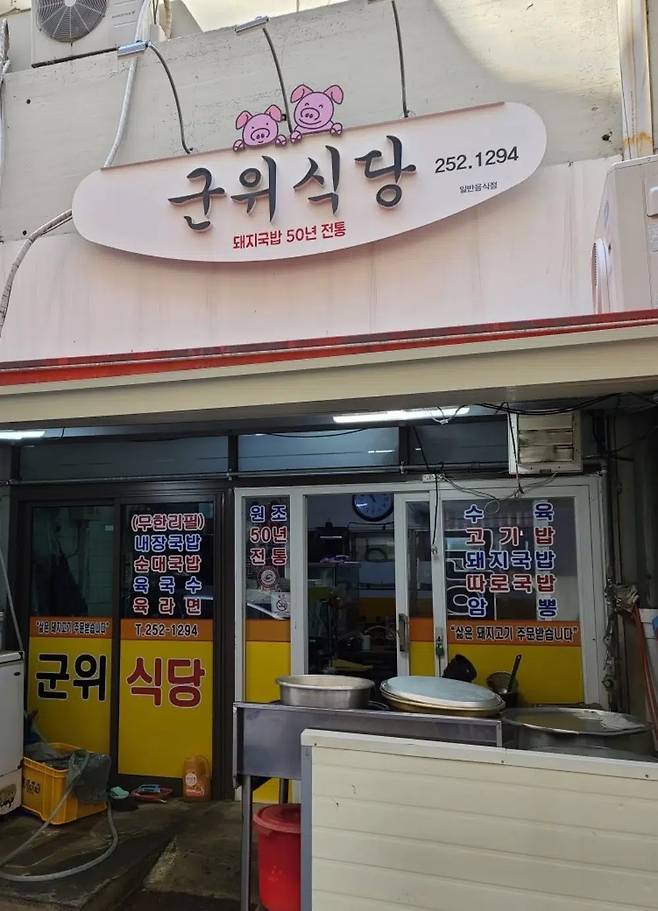 여행 중 맛집에 큰 욕심이 있진 않아서 미리 계획을 세우지 않았다. 첫째 날 밤 급하게 대구 맛집 유튜브를 여러 개 돌려보던 중 동선과 영업시간을 따져 낙찰된 곳이다. 성시경과 싸이가 다녀갔다는 유명한 돼지국밥 맛집 ‘군위식당’.