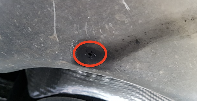 세차 시, 이 구멍이 막혀있지는 않은지 한번 확인해 보세요. 만약 흙먼지 등으로 막혀있다면, 얇은 철사나 클립 등으로 가볍게 뚫어주는 것이 좋습니다.