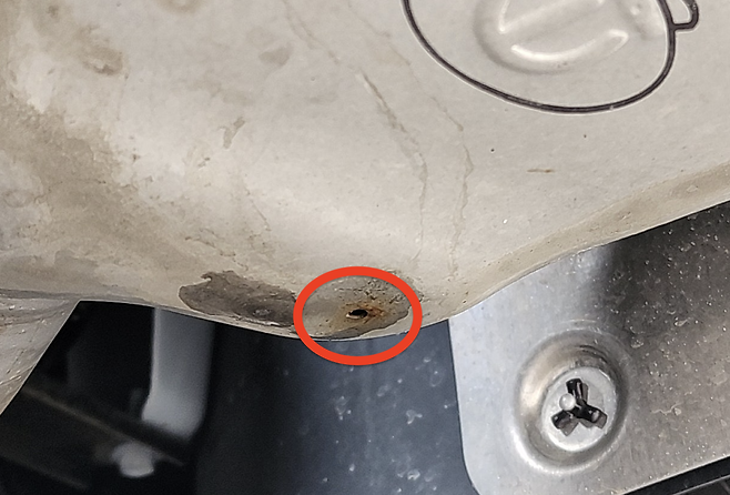 이 작은 구멍의 정체는, 머플러 내부에 고인 '물'을 빼내기 위한 '배수구'입니다.