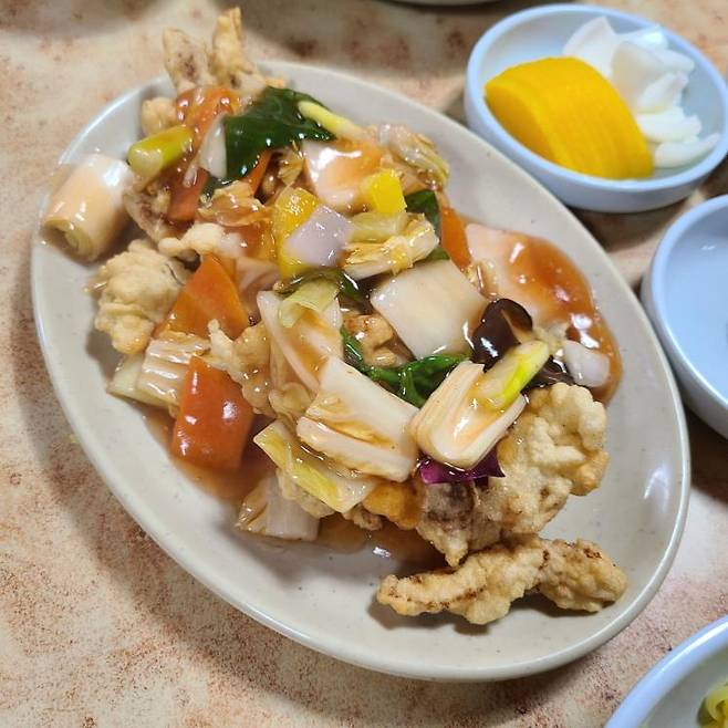 11시 오픈이지만 오픈런 하는 사람들로 북적이는 이곳. 원래도 목포의 중깐 맛집으로 소문이 자자했지만 풍자가 ‘또간집’에서 방문해 더욱 유명해졌다. 말도 안 되는 서비스를 내주는 걸로도 알려졌는데 중깐을 시키면 탕수육과 짬뽕을 서비스로 준다. 믿기지 않는 서비스지만 맛과 양도 훌륭하니 믿고 주문해 볼 것. 중깐은 면이 얇고 쫄깃해 소스 맛을 더욱 진하게 느낄 수 있다.