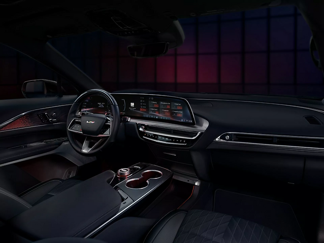 캐딜락이 첫 고성능 전동화 V시리즈 모델 '리릭-V'를 공개했다.