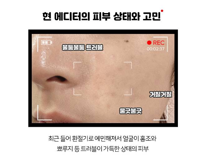 극심한 피부 건조와 함께 파운데이션을 바를수록 피부는 하얗게 뜨는 반면, 칙칙한 피부가 고민이었던 에디터.