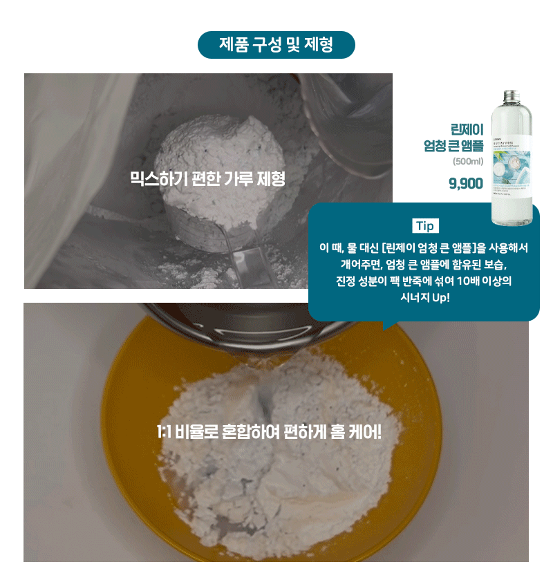 물과 만나면 부드럽게 풀리며 덩어리 없이 매끈하게 섞이는 제형이라 초보자도 쉽게 사용할 수 있다.