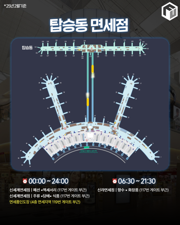 또 온라인 면세품을 인도받을 수 있는 면세품 인도장은 24시간 운영하며 면세지역 43번, 11번 게이트 부근 4층에 운영해 몇 번 게이트 면세품 인도장인지 사전에 확인 후 방문하셔야합니다.
