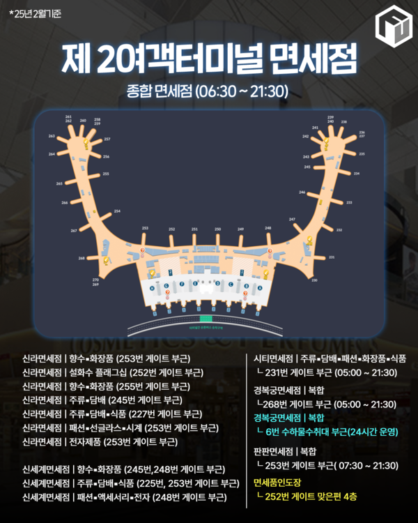 또 제 2터미널 면세품 인도장은 252번 게이트 맞은편 4층에 위치해 있으며 24시간 운영합니다.
