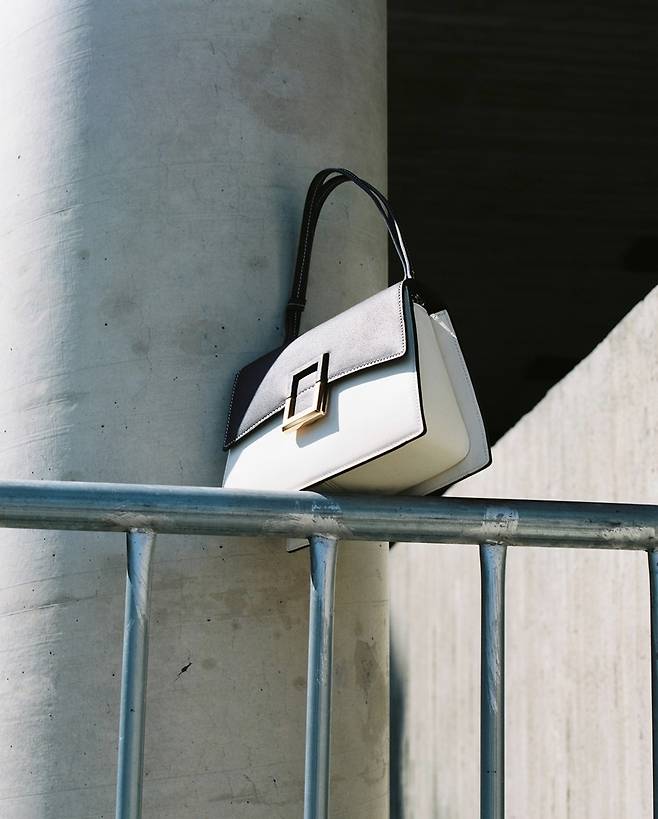 블랙 앤 화이트 컬러에 화이트 스티치로 포인트를 준 가방이었어요
