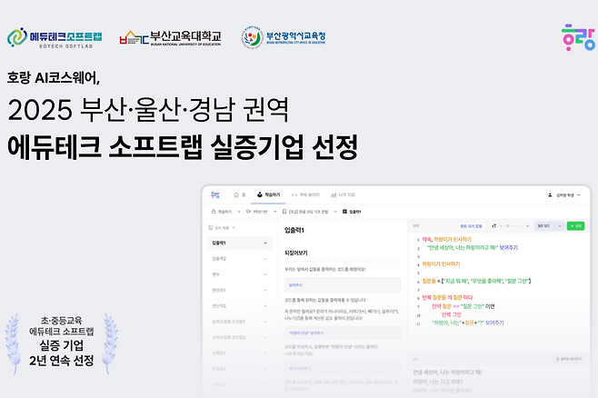 오는 11일 부산교육대학교에서 열리는 ‘부산 에듀테크 소프트랩 기업·교사 매칭데이’ 행사를 시작으로 부산·울산·경남 권역의 선생님들과 함께 호랑 AI코스웨어의 다양한 기능들을 직접 실증해보며 교육성과 효과성을 확인할 예정이다.