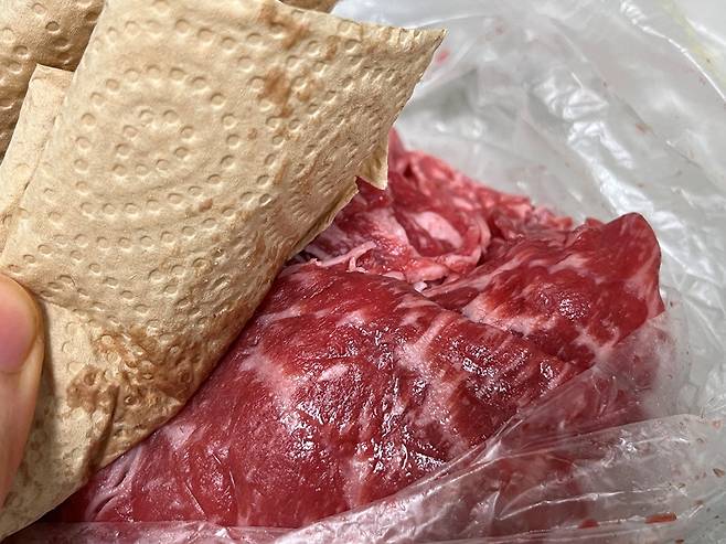 소불고기는 최대한 얇게 썰린 것을 사세요. 그래야 뭉쳐지지 않고 부드럽게 골고루 익습니다. 고기는 키친타월로 핏물을 최대한 제거합니다.