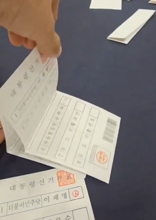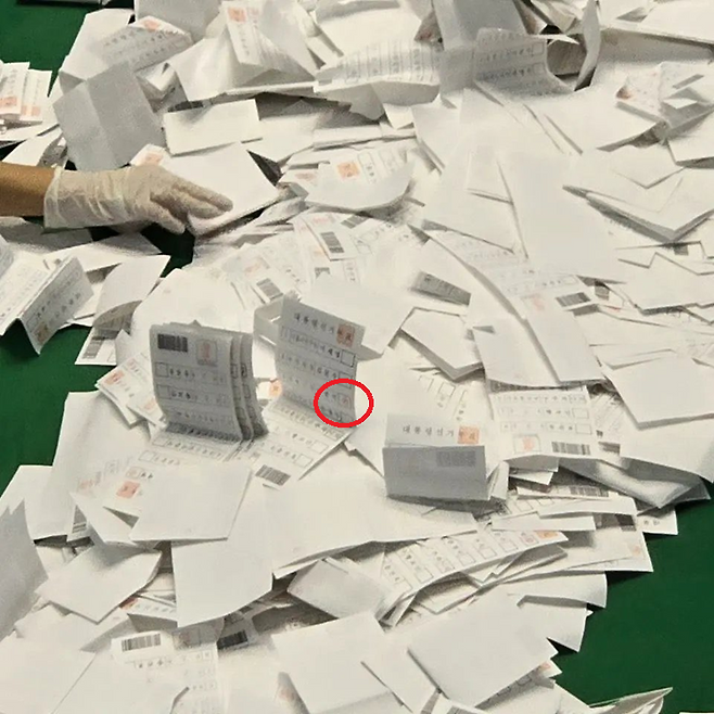 4. 여러장 겹쳐진 이재명 투표지!! (다른 후보들 투표지도 저런거 있음;)
