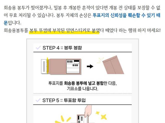 ➡️ 관외 투표 용지는 양면테이프가 붙어있는 투표봉투에 넣어서 밀봉합니다. 그 과정에서 봉투에 용지를 넣다가 양면스티커에 붙는 경우가 간혹 있을수 있고(내가 그 경험자), 용지가 봉투에 딱 맞는 사이즈이기에 봉투 끝부분을 접어서 밀봉할때에도 접착제 부분이 용지 끝부분에 닿을수 있습니다. 그 과정에서 찐덕거리는 끈기가 용지에 남아 딱풀처럼 붙을수 있습니다.