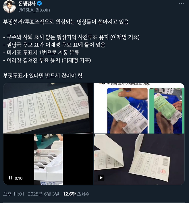 * 참고로 뭉치로 겹쳐진 투표용지 올린 사진도 잘 보면 다른 후보(이준석)에게 투표한거랑 섞여있음