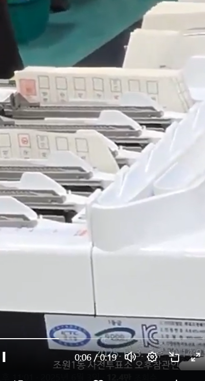 ➡️개표절차 7번 초기 과정 도중입니다. 기계가 표를 후보별로 나누고 있는 맨 처음 단계입니다. 유효표로 집계되기 전 단계이며 이재명표로 잘못분리된 미기표 용지는 7번 중/후반부 과정 및 8번 과정 총 세번에 거쳐 걸러지게 됩니다.