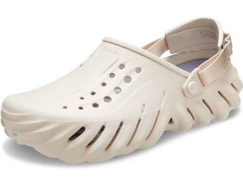 에코(Echo) 라인업은 스트리트웨어 감성과 경량의 편안함을 결합한 하이브리드 스타일의 제품군이다. 클로그, 슬라이드, 웨이브 등 다양한 형태로 구성되며, 기존 클래식 라인업과는 확연히 다른 파격적인 디자인이 가장 먼저 눈에 띈다. 어퍼(윗부분)는 Croslite™ 일체형 구조로 클래식과 유사하지만, 가장 큰 차이점은 LiteRide™ 드롭인 풋베드를 적용했다는 점이다. 이 기술은 크록스 특유의 분리형 인솔 구조로, 기존 Croslite™ 대비 25% 더 가볍고, 40% 더 부드러운 쿠셔닝을 제공한다. 또한, Croslite 아웃솔 위에 LiteRide 인솔이 얹힌 이중 구조 덕분에 착화 시 충격 흡수력과 지지력이 동시에 강화되어, 편안함과 안정성을 모두 잡은 라인업이라 할 수 있다.