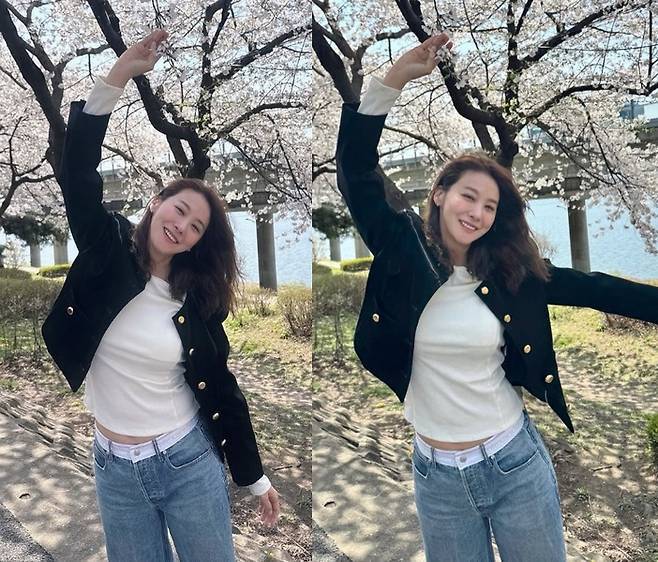 군더더기 없는 화이트 톤 이너와 노출된 밴딩 디테일은 트렌디함을 더했으며, 화장기 거의 없는 내추럴한 얼굴과 바람에 살짝 흩날리는 웨이브 헤어는 벚꽃 풍경과 어우러지며 영화의 한 장면 같은 분위기를 자아냈습니다.