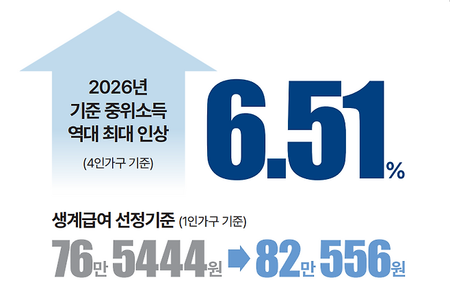 2026년 기준 중위소득 역대 최대 인상 6.51%